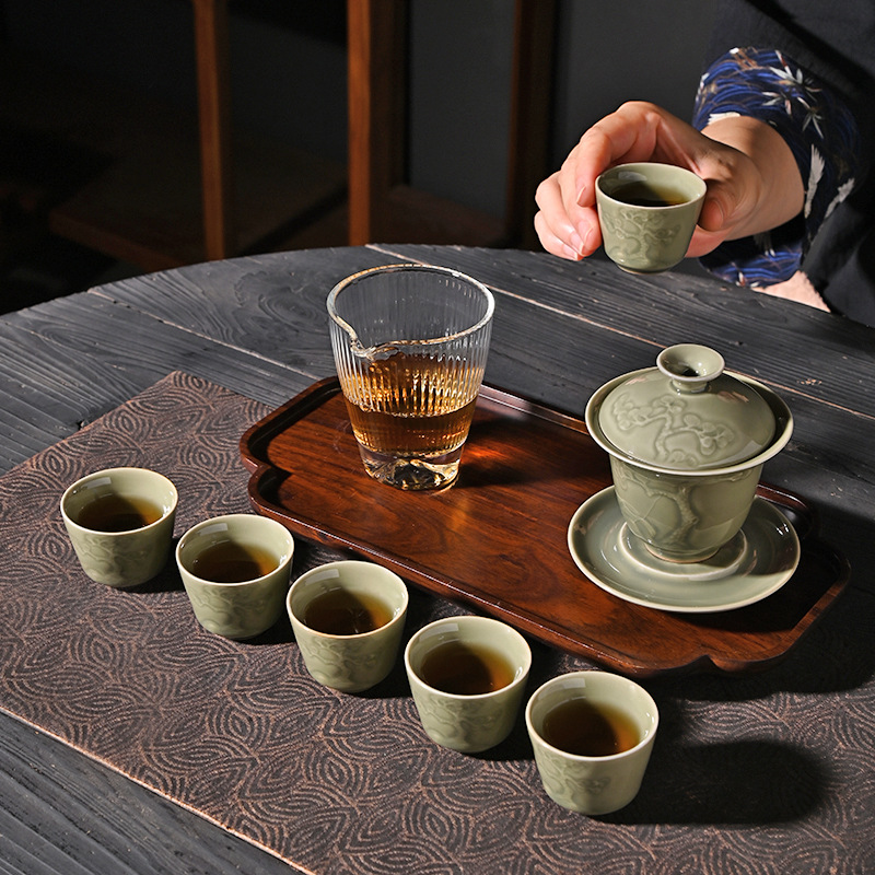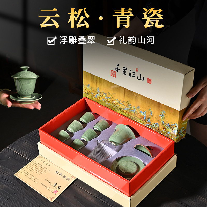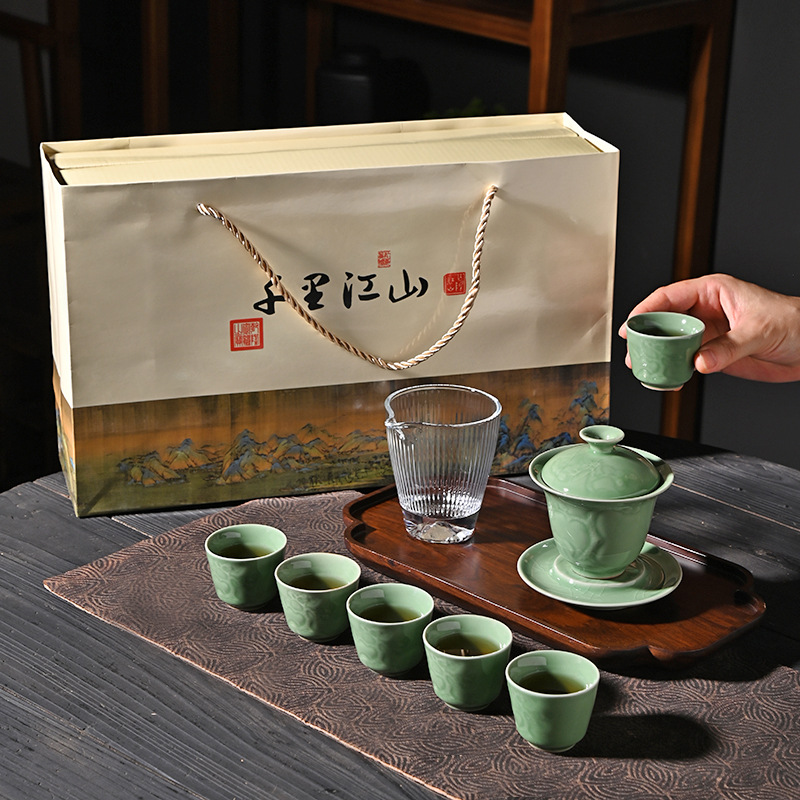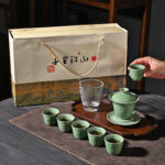 Elegantiškas retro stiliaus arbatos rinkinys iš Dehua porceliano – puikus pasirinkimas verslo dovanai, šventiniam proginiam rinkiniui ar kasdieniam arbatos ritualui. Klasikinė „Qingci“ (青瓷) glazūra suteikia švelnaus blizgesio ir natūralaus keramikos atspalvio efektą.